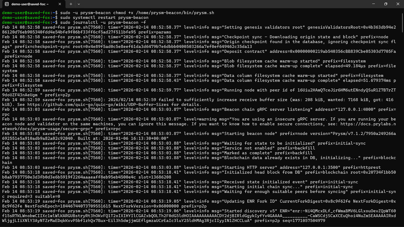 sudo -u prysm-beacon chmod +x /home/prysm-beacon/bin/prysm.sh