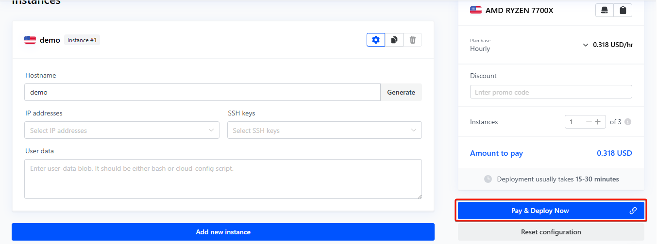 Once signed in, click on New instance on your Cherry Servers user's portal: