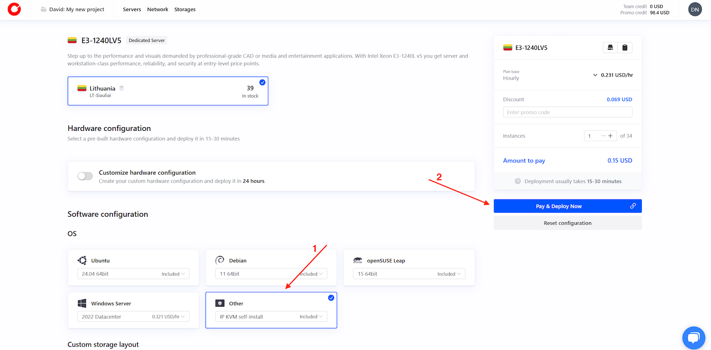 Now, log in to your Cherry Servers dashboard, select and deploy a dedicated server.