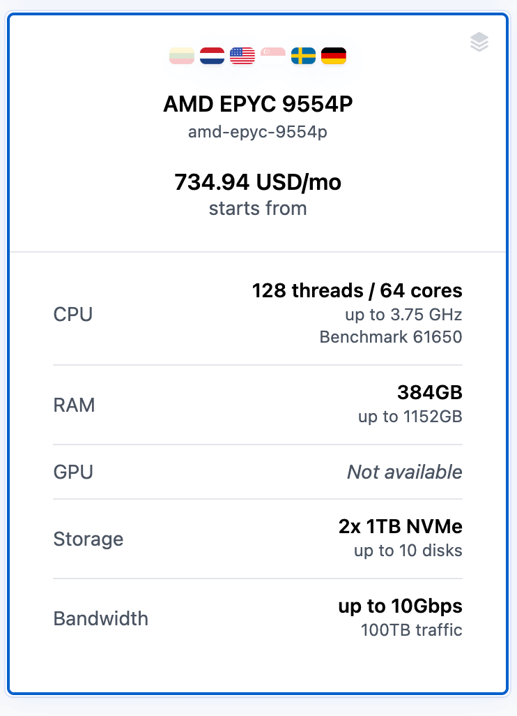 Optimize cost and performance with a pre-configured or custom dedicated bare metal server for blockchain workloads. High uptime, instant 24/7 support, pay in crypto.