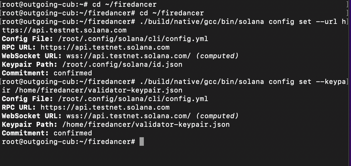 ./build/native/gcc/bin/solana config set --keypair /home/firedancer/validator-keypair.json
