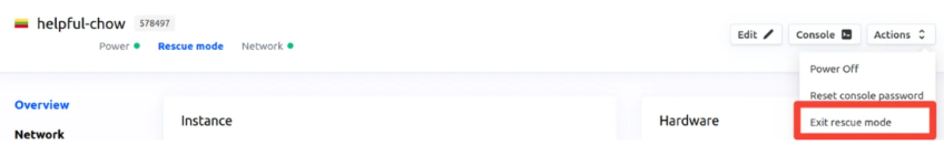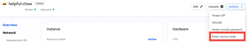 - Wait for a few minutes while your server reboots into “Rescue Mode”.