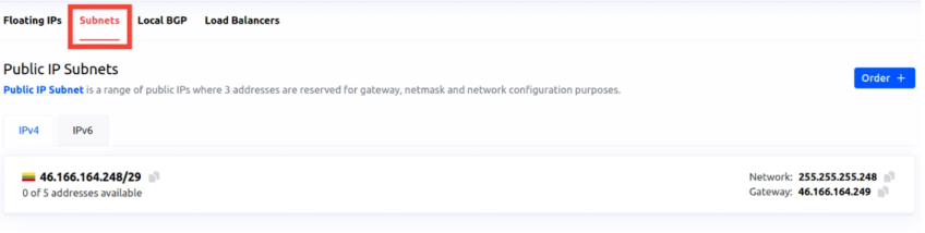 - In the "Network" section of the client portal, navigate to the "Subnets" tab to view all available subnets.