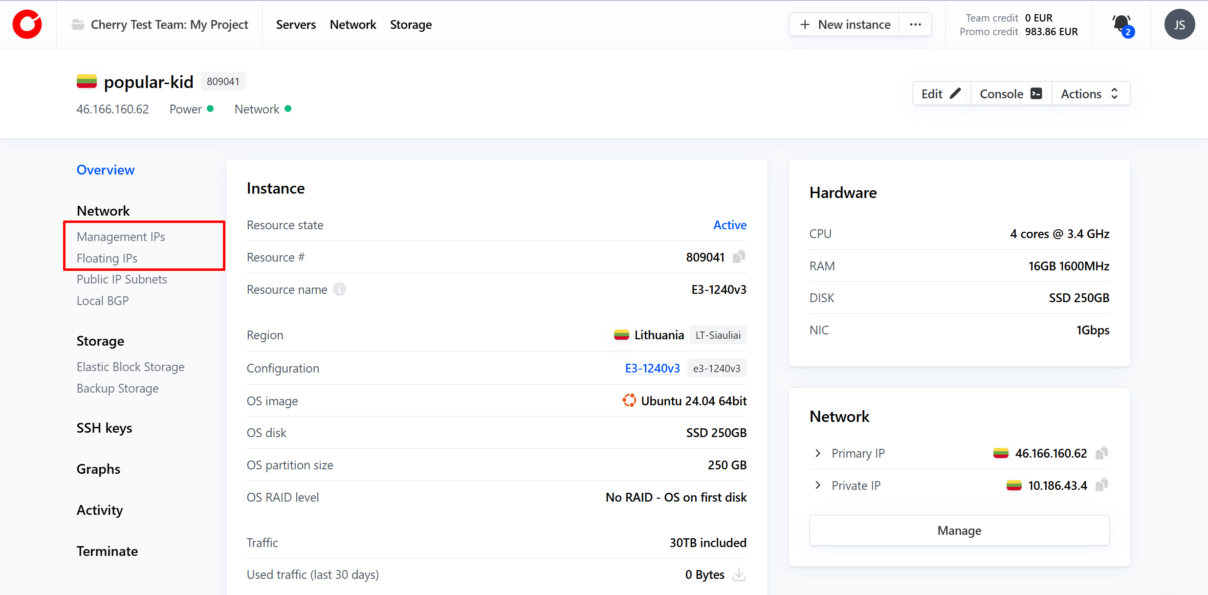 - In the "Management IPs" or "Floating IPs" section, locate the box containing your IP address.