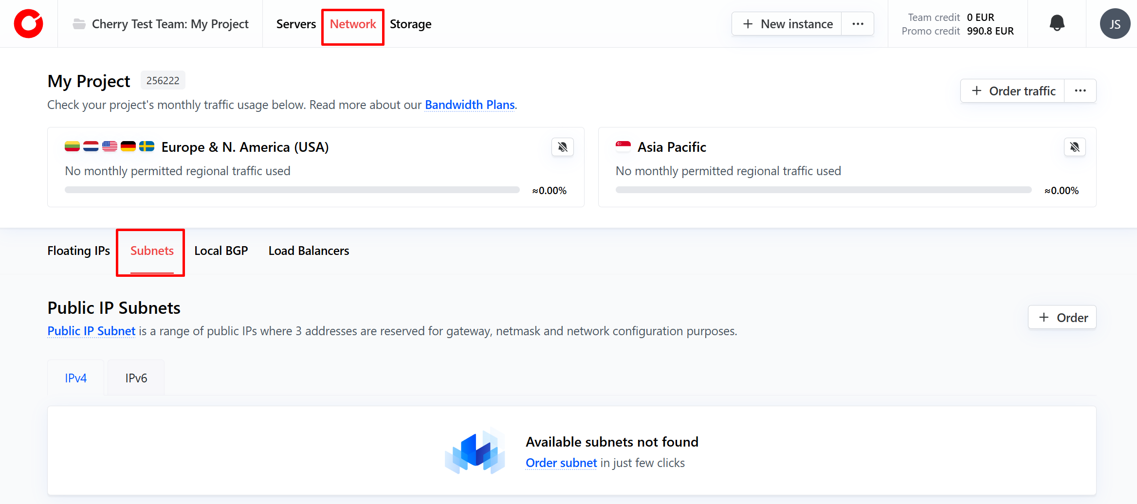 Clients can order a public IP subnet at any time, however only subnet ranges /29 and /28 can be automatically deployed. For ranges /27 and /26, please contact our dedicated support engineer team.