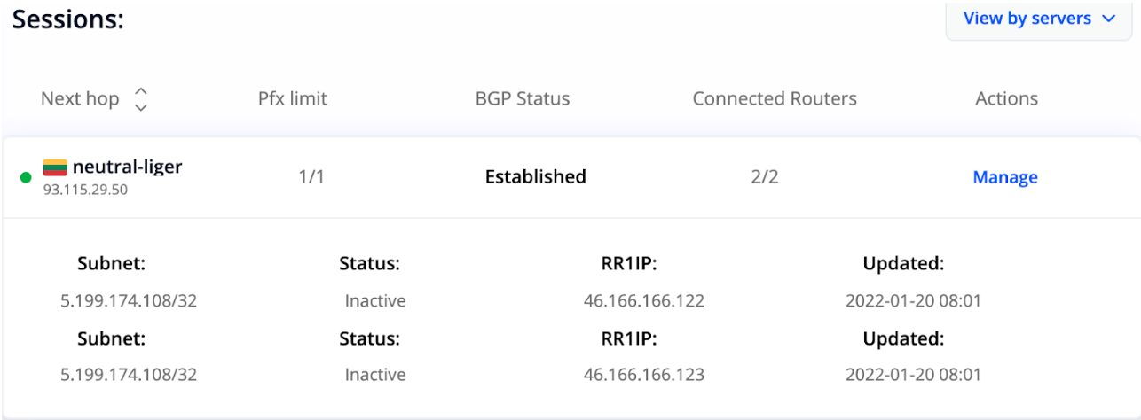 - Degraded - the session is only established with one out of two Cherry Servers BGP routers