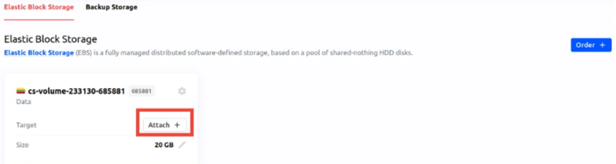 After completing the order, the EBS volume will be displayed in the elastic block storage dashboard in the storage tab of your client portal.