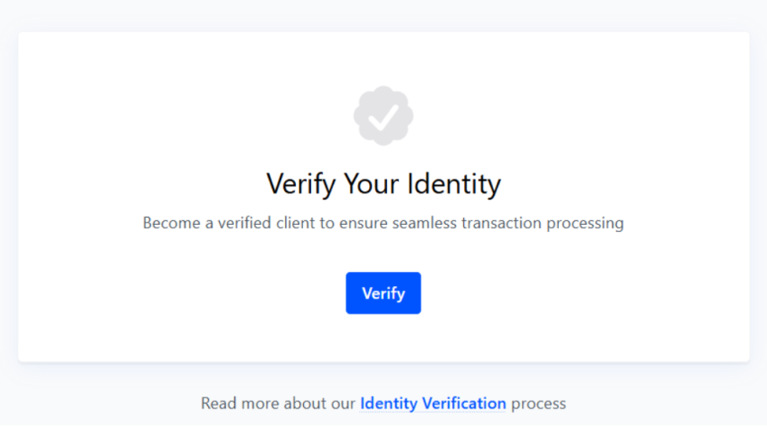 Click the button labeled “Verify” to begin the process, and follow the instructions provided by Idenfy.