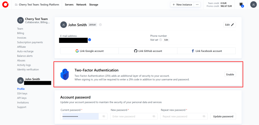 Alongside traditional password login, Cherry Servers offers MFA in two ways: